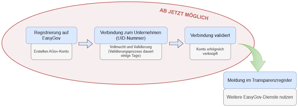 - Die Registrierung bei EasyGov kann bereits heute vorgenommen werden.